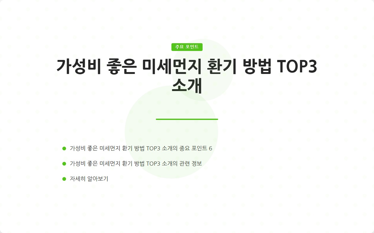 미세먼지는 우리의 건강에 심각한 영향을 미칠 수 있는 공기 오염 물질입니다. 특히 대도시에서는 미세먼지 농도가 높아져 호흡기 질환이나 알레르기 문제를 유발할 수 있습니다. 따라서 효율적인 환기 방법을 찾는 것이 중요합니다. 이번 포스팅에서는 가성비 좋은 미세먼지 환기 방법 TOP3를 소개하겠습니다.
