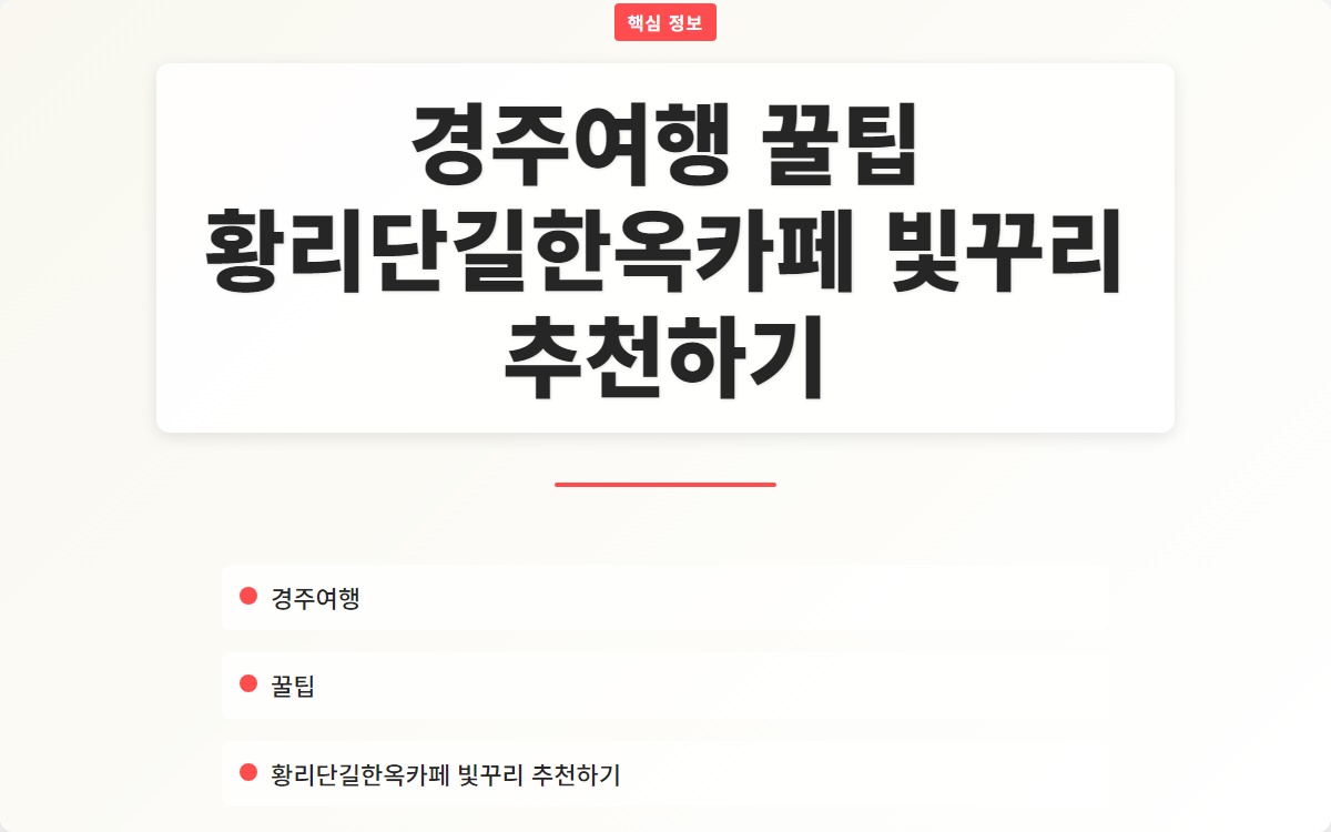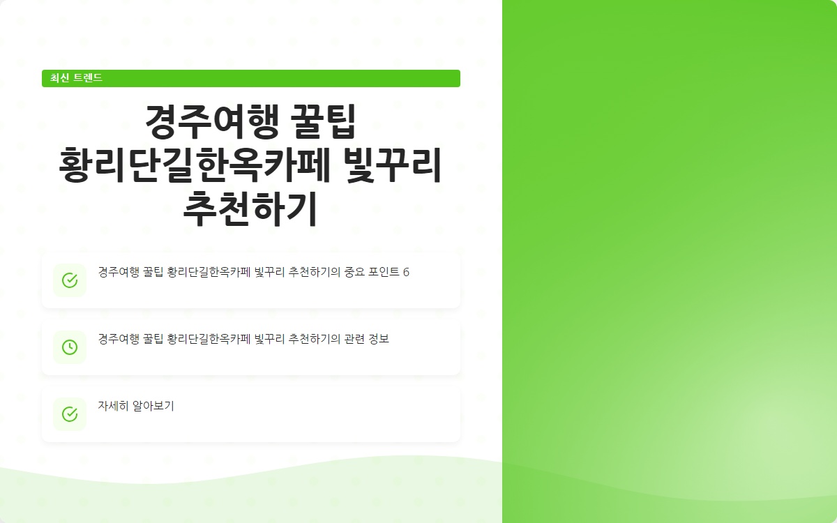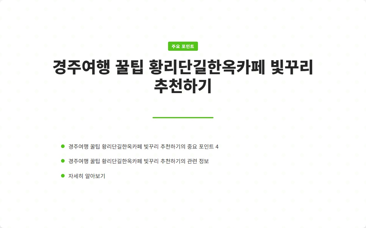 경주여행을 계획하면서 황리단길 한옥카페 '빛꾸리'를 꼭 방문해보세요.