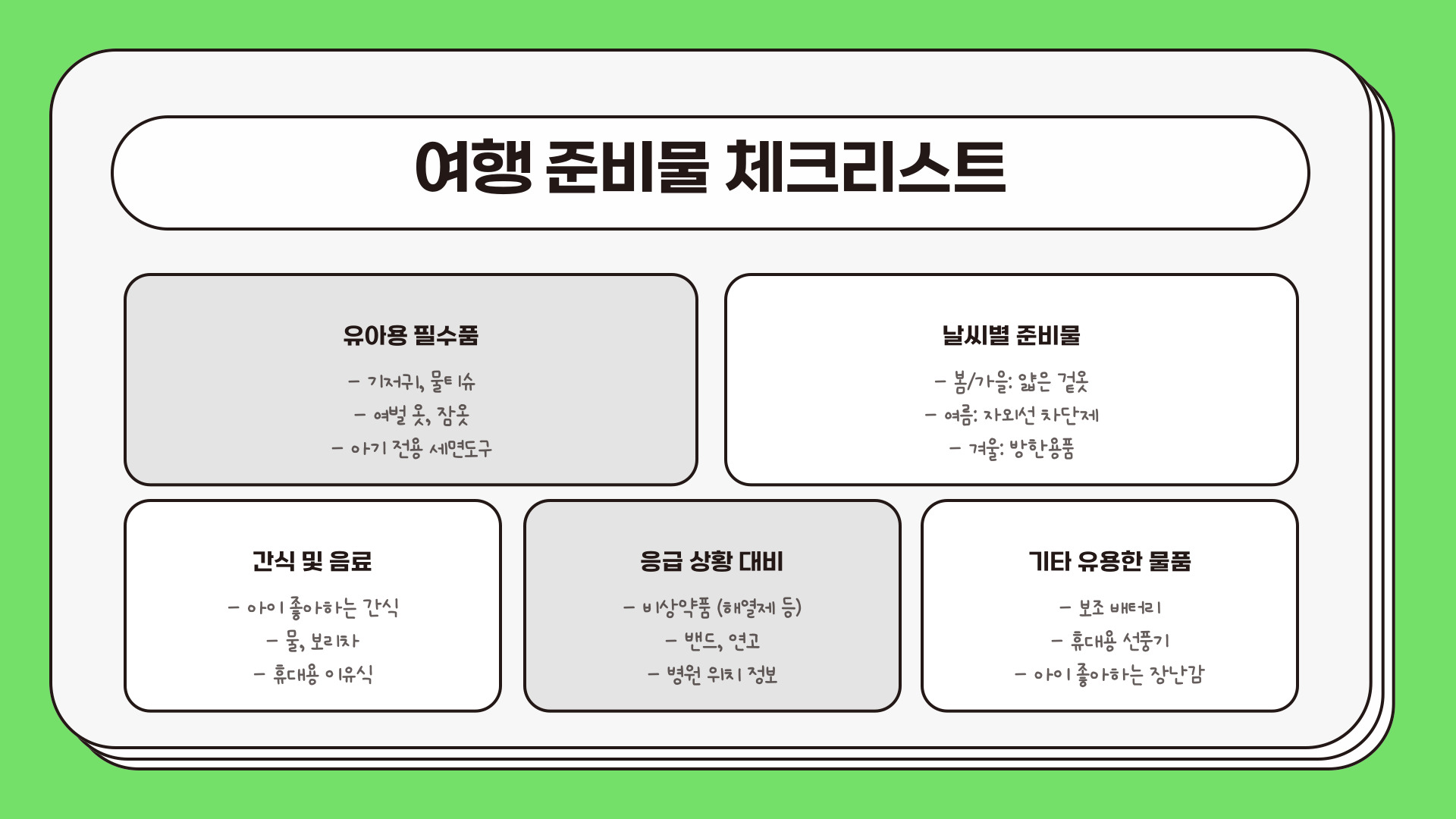 - 짐을 최소화하고 가벼운 간식을 준비하세요.