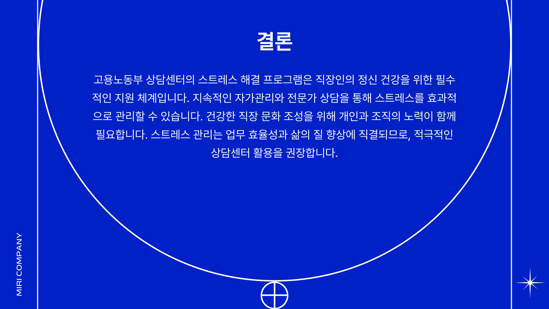 직장 내의 스트레스는 혼자서 해결하기 힘든 경우가 많습니다. 이때는 고용노동부 상담센터와 같은 전문가의 도움을 적극적으로 활용하는 것이 중요합니다. 이를 통해 건강하고 행복한 직장 생활을 이어갈 수 있기를 바랍니다.