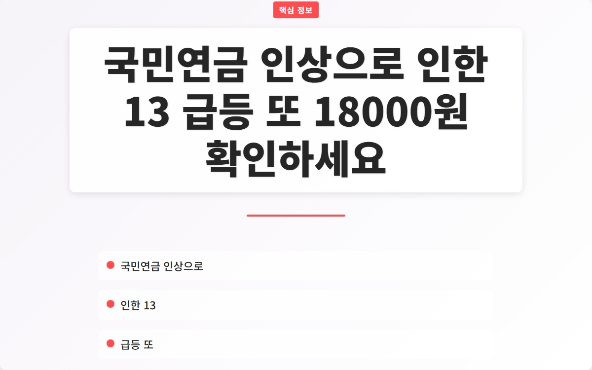 국민연금 인상으로 인한 13 급등 또 18000원 확인하세요
