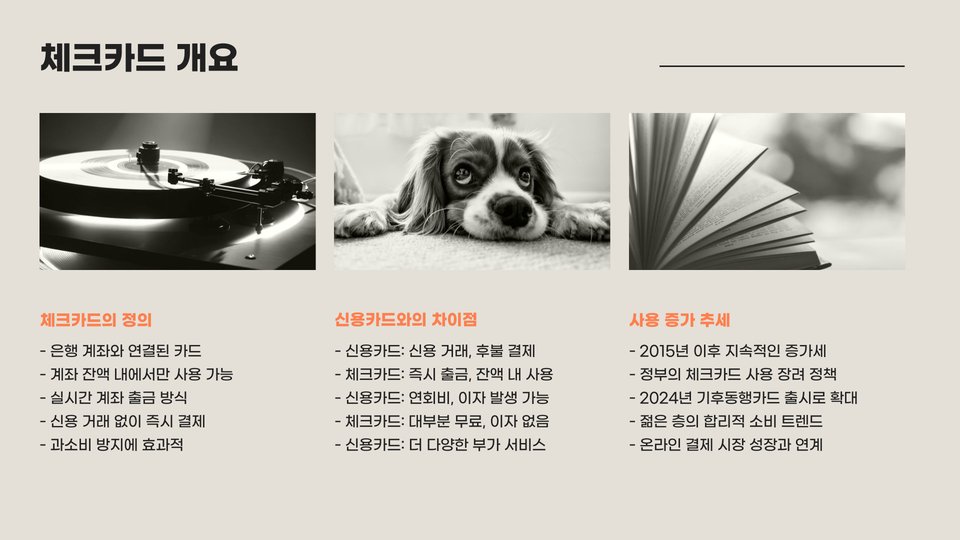 | 국민체크카드 | 안정성, 접근성, 실시간 관리 | 제휴 혜택이 상대적으로 적음 |
