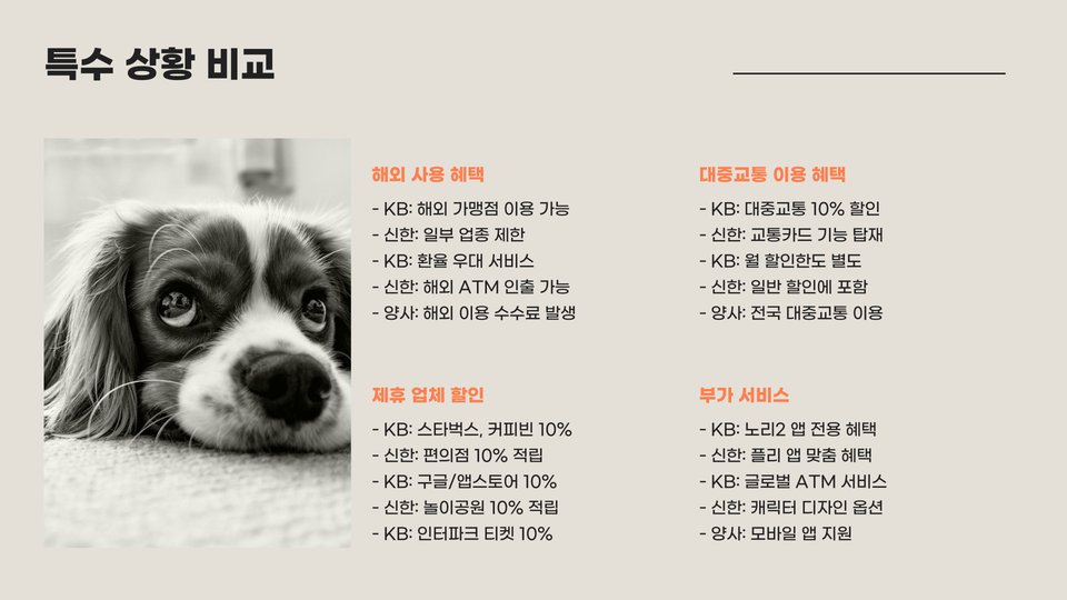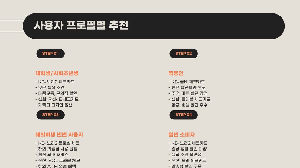 - 개인의 소비 패턴에 따라 적절한 카드 선택 필요.
