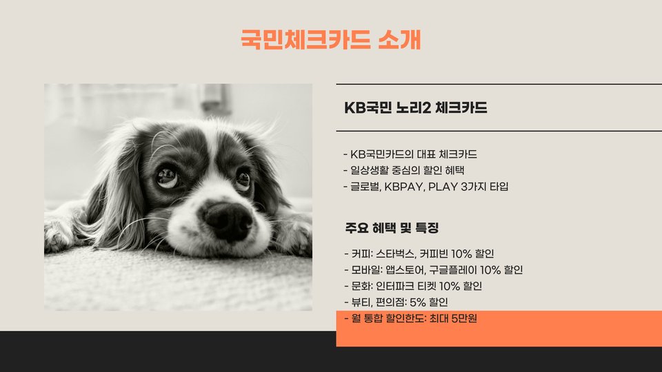 - 국민체크카드는 안정성과 접근성이 뛰어남.