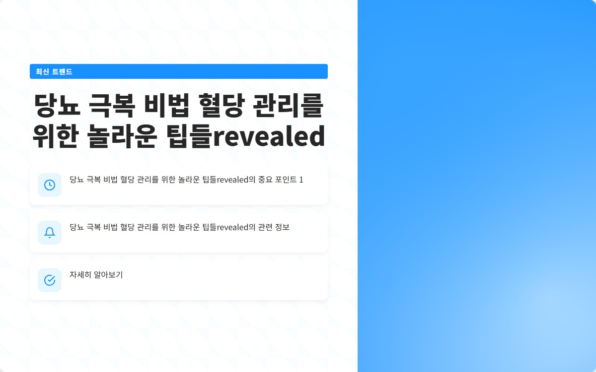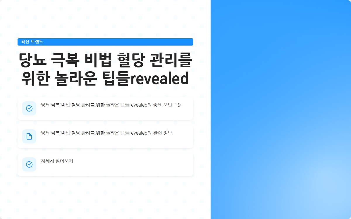 당뇨 극복 비법 혈당 관리를 위한 놀라운 팁들revealed
