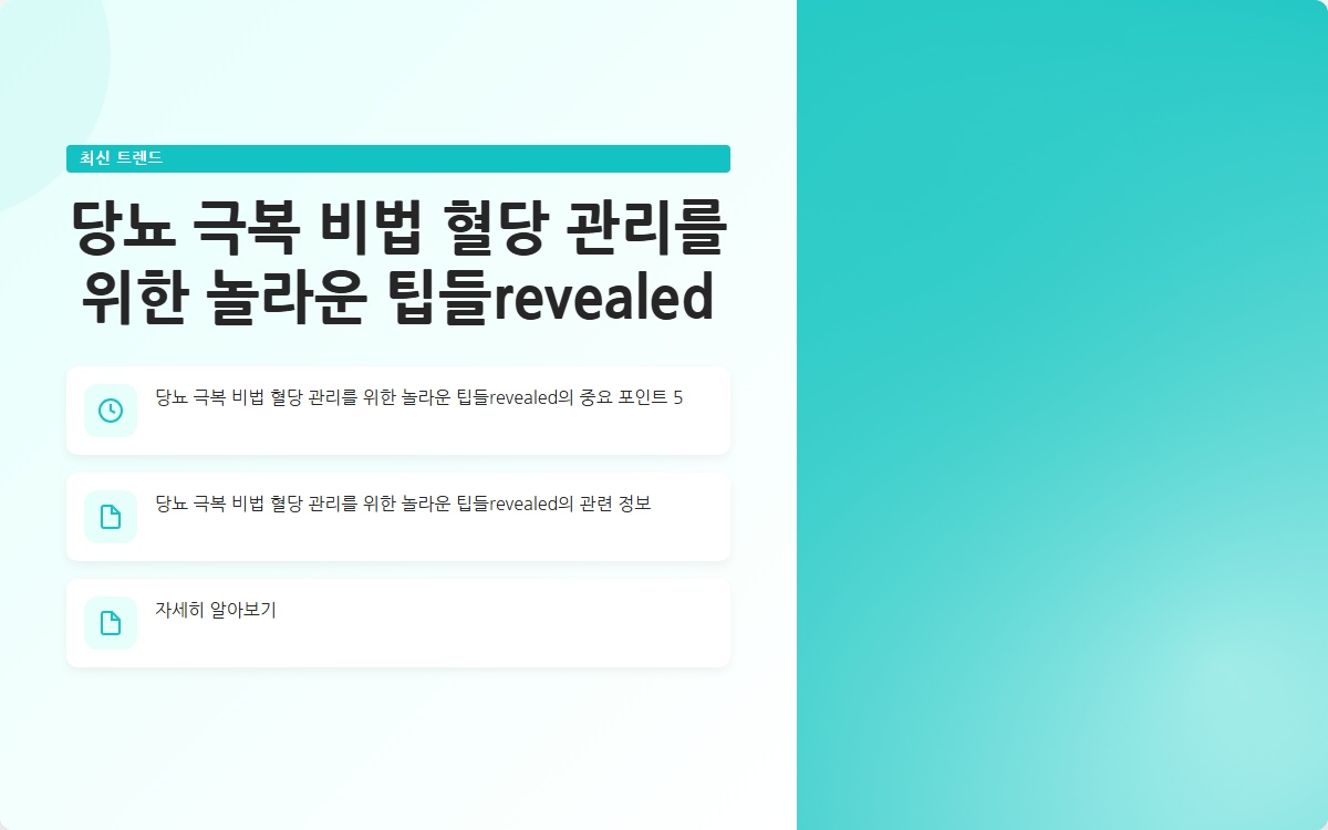 당뇨 극복 비법 혈당 관리를 위한 놀라운 팁들revealed