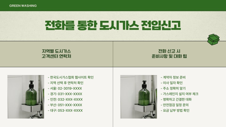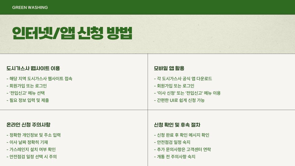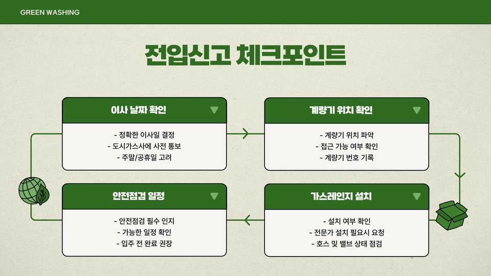 - 도시가스 전입신고는 이사 전에 미리 예약해야 함