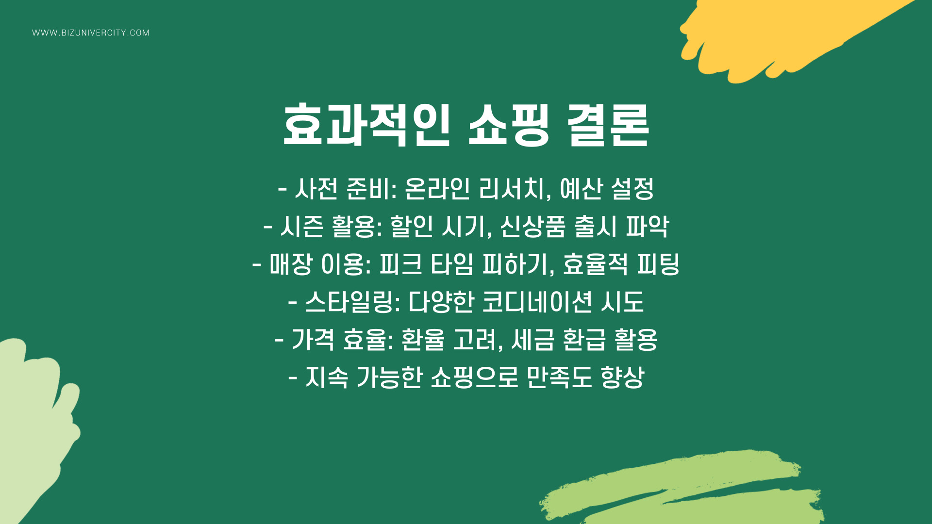 마지막으로, 친구나 가족의 의견을 듣고 그들과 함께 쇼핑 리스트를 만들어 가는 것도 좋습니다. 이들은 새로운 스타일을 제안해주거나 구매 결정을 도와줄 수 있습니다. 준비 철저하기!가 중요합니다.