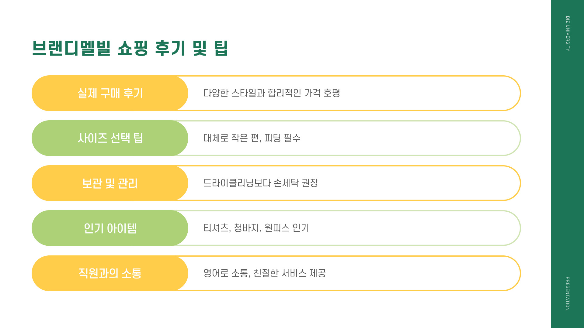 도쿄 브랜디멜빌에서 쇼핑을 할 때는 몇 가지 팁을 기억하면 도움이 됩니다. 첫째, 세일 기간을 활용하세요. 일본에서는 계절별로 세일이 진행되므로 미리 정보를 확인해 할인된 가격으로 쇼핑할 수 있습니다. 둘째, 현지 브랜드를 주목하세요. 일본의 독특한 패션 아이템을 찾고 싶다면, 현지 브랜드를 살펴보는 것이 좋습니다.