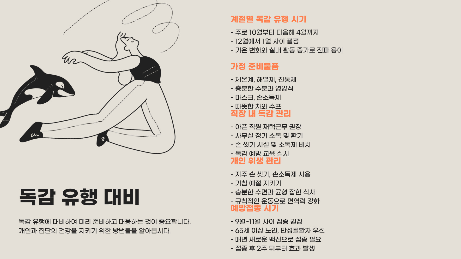 독감 초기증상을 빠르게 인식하고, 적절한 대처를 하는 것이 건강을 지키는 데 중요합니다. 예방 접종과 건강한 습관을 통해 독감을 예방할 수 있으며, 초기 증상이 나타날 경우 신속하게 대응하는 것이 필요합니다. 건강한 겨울을 보내기 위해 이러한 정보를 잘 활용하시기 바랍니다.