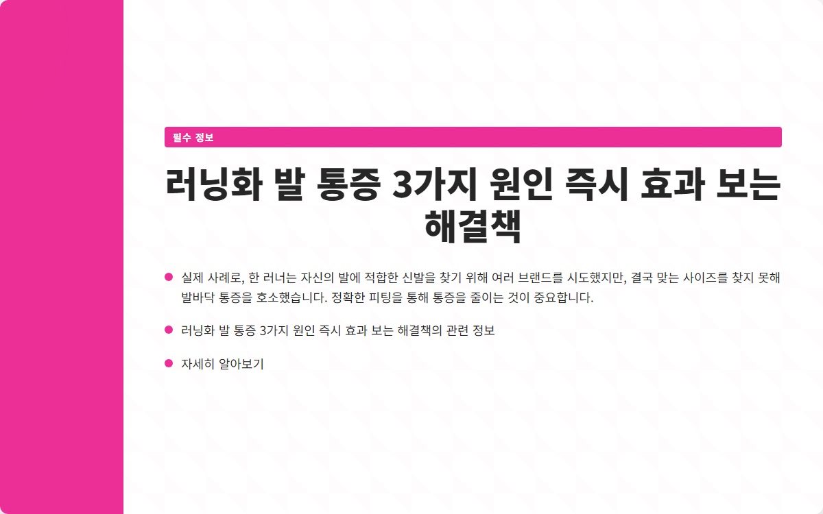 발 통증에 대한 이해와 해결책을 알고 나면, 더 즐거운 러닝을 경험할 수 있습니다. 지금 바로 시작해보세요!