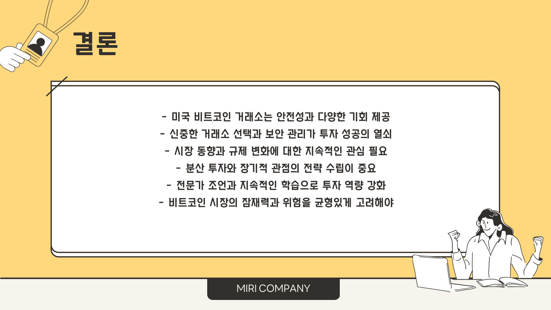 결국, 미국 비트코인 거래소는 투자자들에게 많은 기회를 제공하고 있습니다. 이러한 거래소를 활용하지 않는다면 후회할 수 있는 상황이 발생할 수 있습니다. 비트코인과 같은 암호화폐에 대한 투자는 신중을 기해야 하지만, 올바른 선택과 정보 분석이 뒷받침된다면 충분히 매력적인 투자처가 될 수 있습니다.