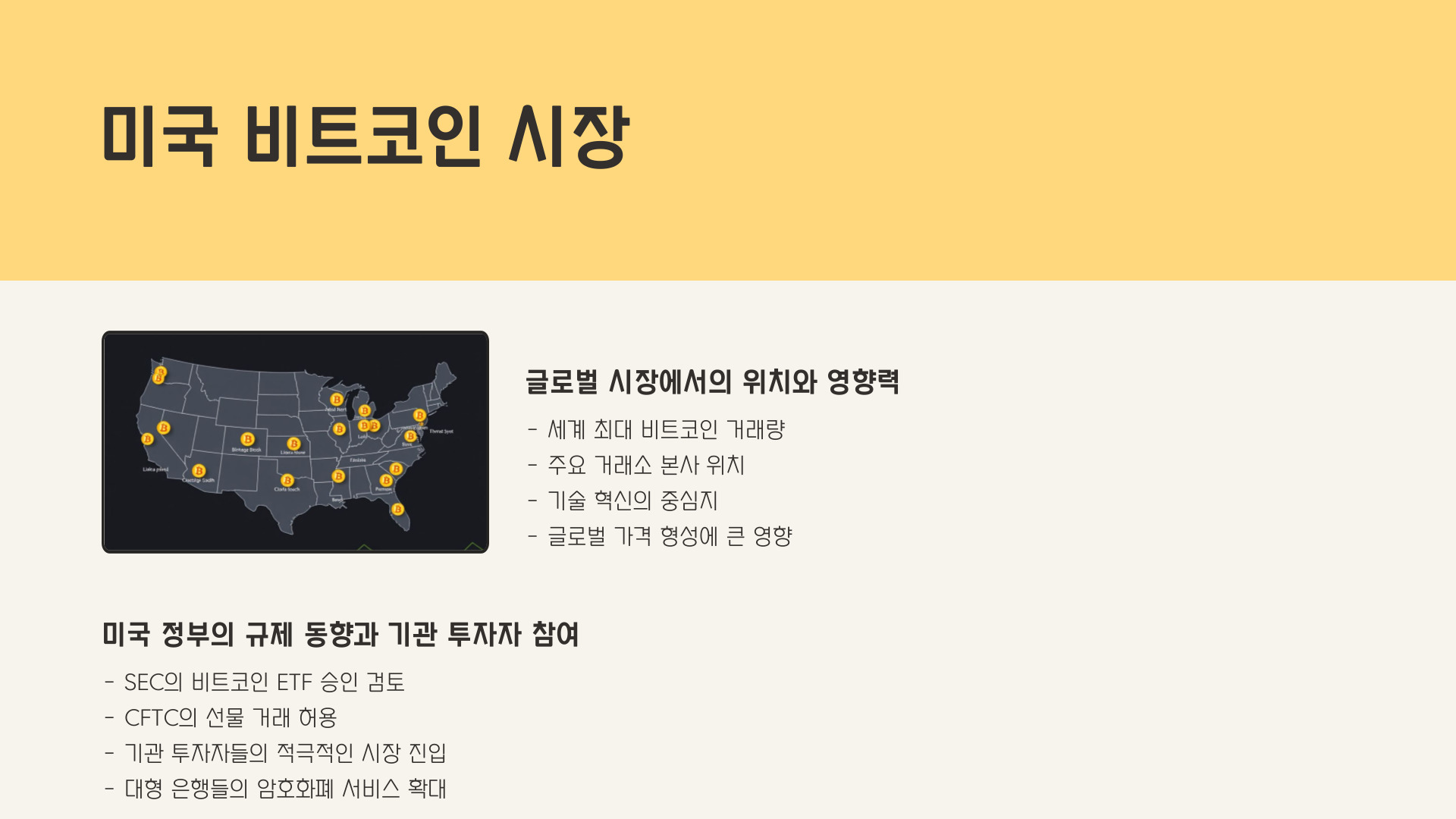 미국에서는 여러 비트코인 거래소가 있으며, 각각의 거래소는 다양한 기능과 특징을 가지고 있습니다. 예를 들어, 코인베이스(Coinbase), 크라켄(Kraken), 비트스탬프(Bitstamp)와 같은 거래소들이 있습니다. 이들 거래소는 사용 편의성, 거래 수수료, 다양한 암호화폐 지원 등의 차별점을 가지고 있습니다.