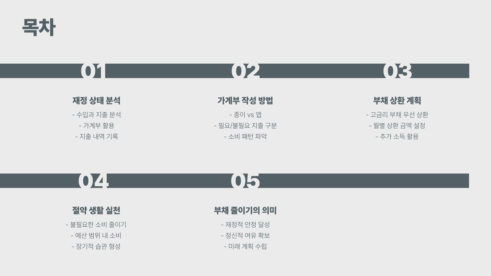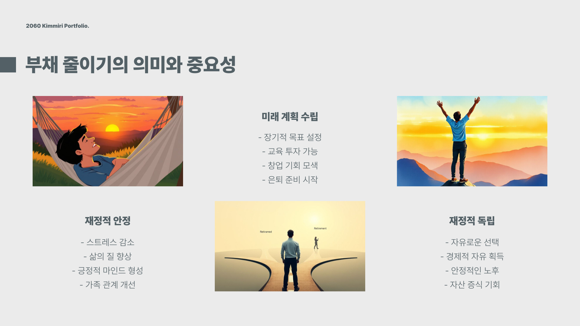 - 부채 줄이기는 재정적 안정과 정신적 여유를 가져다준다