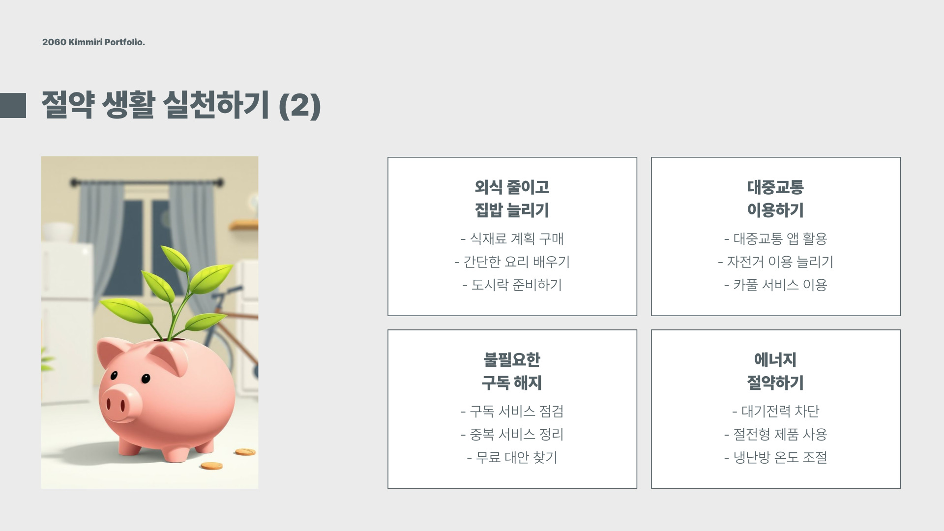 - 절약 생활을 실천하여 불필요한 소비 줄이기