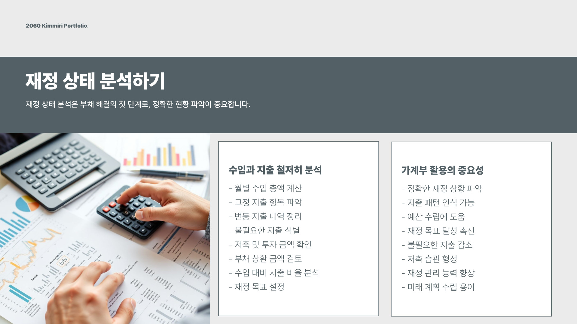 - 부채 문제를 해결하기 위한 첫 단계는 재정 상태 분석하기