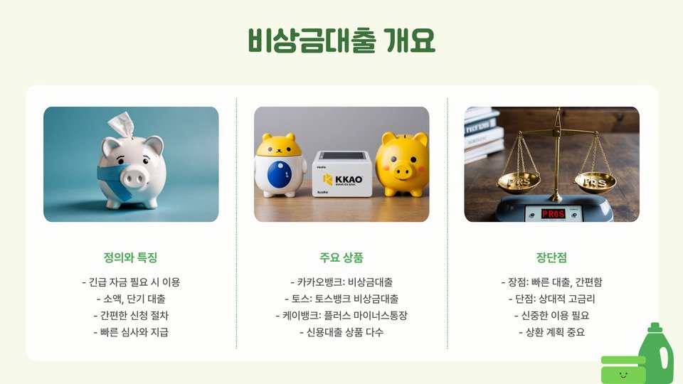 - 비상금대출은 긴급한 재정적 필요를 해결하는데 유용하다.