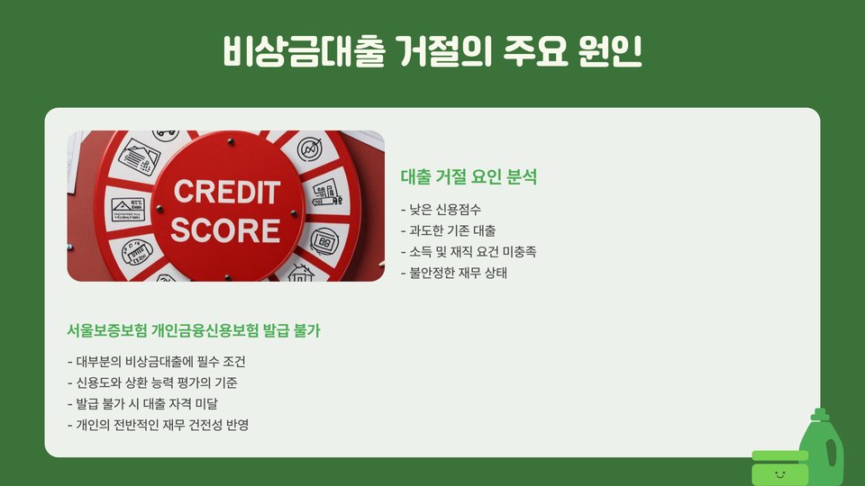 대출이 거절되는 이유는 다양합니다. 신용 점수 부족, 소득 불안정, 혹은 대출 한도 초과 등이 있습니다. 이런 상황에서 어떻게 대응할 수 있을지 알아보겠습니다.
