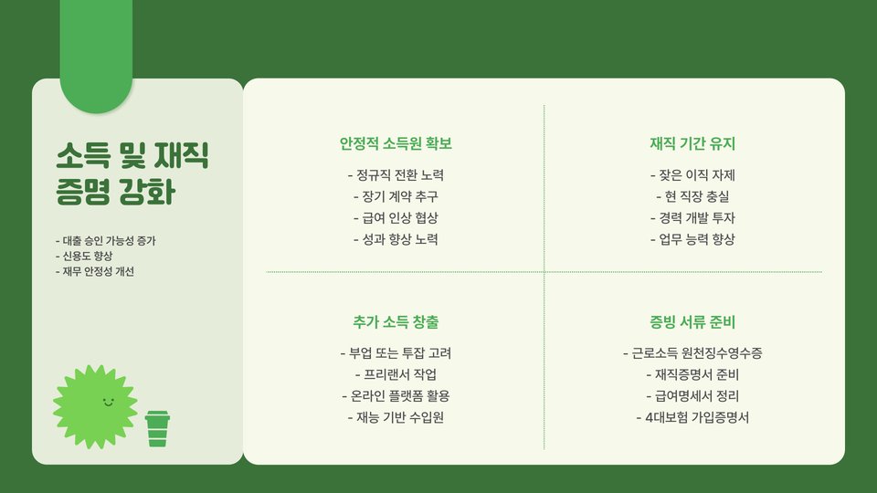 | 소득 불안정 | 문서 강화 및 담보 제공 |
