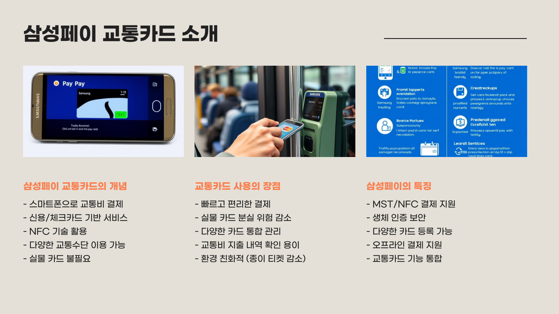 - 삼성페이로 교통비를 간편하게 결제할 수 있음