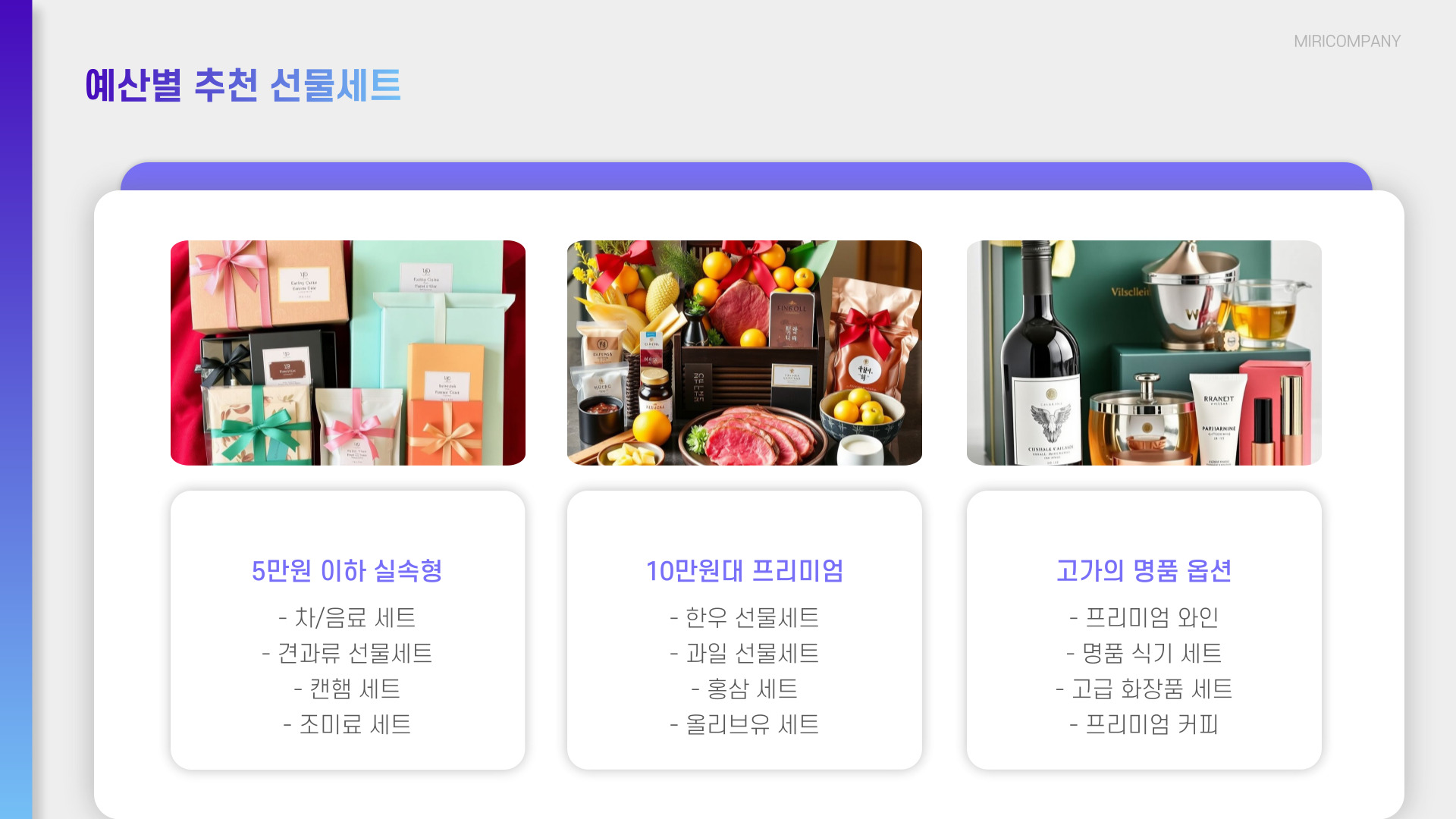 - 받는 사람의 취향: 맞춤형 선물세트를 선택합니다.