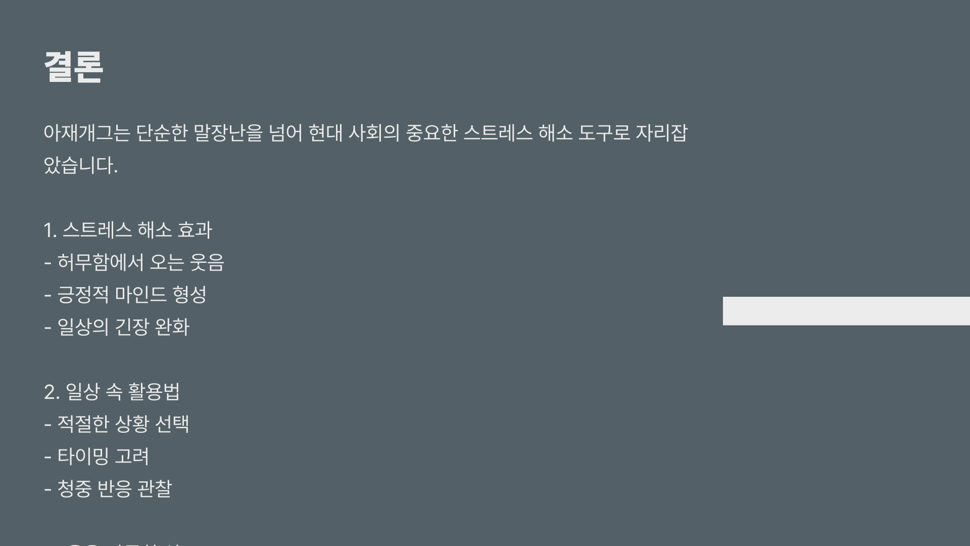 - 아재개그는 스트레스 해소에 효과적이다.