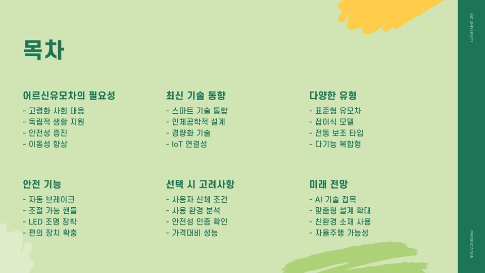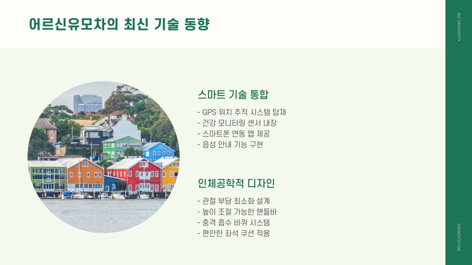첫 번째로 살펴볼 트렌드는 안전성입니다. 많은 어르신유모차가 다양한 안전 장치를 갖추고 있습니다. 예를 들어, 한 방향으로만 이동할 수 있도록 하는 브레이크 시스템과 내구성이 강한 프레임이 운전 중 넘어지는 사고를 예방할 수 있도록 돕습니다. 또한, 센서 기반 안전 기능이 장착된 모델들도 많아졌습니다. 이러한 기능은 갑작스러운 장애물에 대해 실시간으로 반응하여 사고를 미연에 방지합니다.