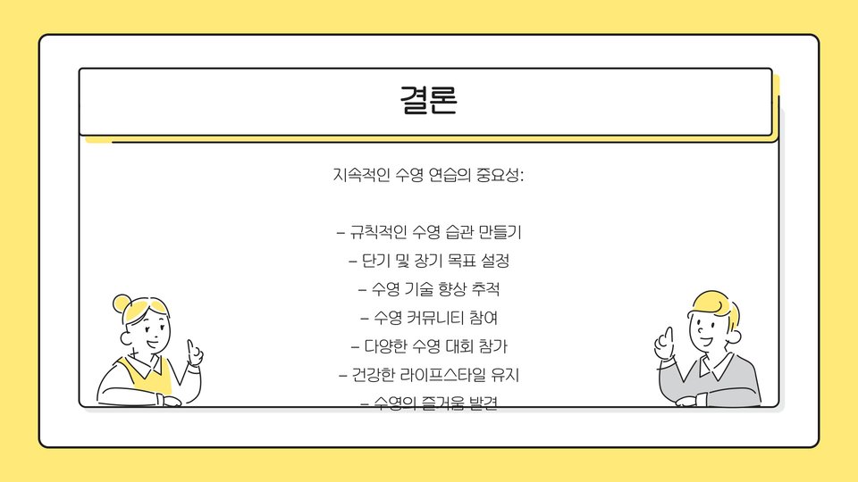 결론적으로, 여자 수영은 기초부터 심화까지 단계별로 배우기 좋은 운동입니다. 지속적인 연습과 올바른 훈련법을 적용하면 누구나 수영의 매력을 느낄 수 있습니다. 수영을 통해 건강한 몸과 마음을 유지해 보세요!