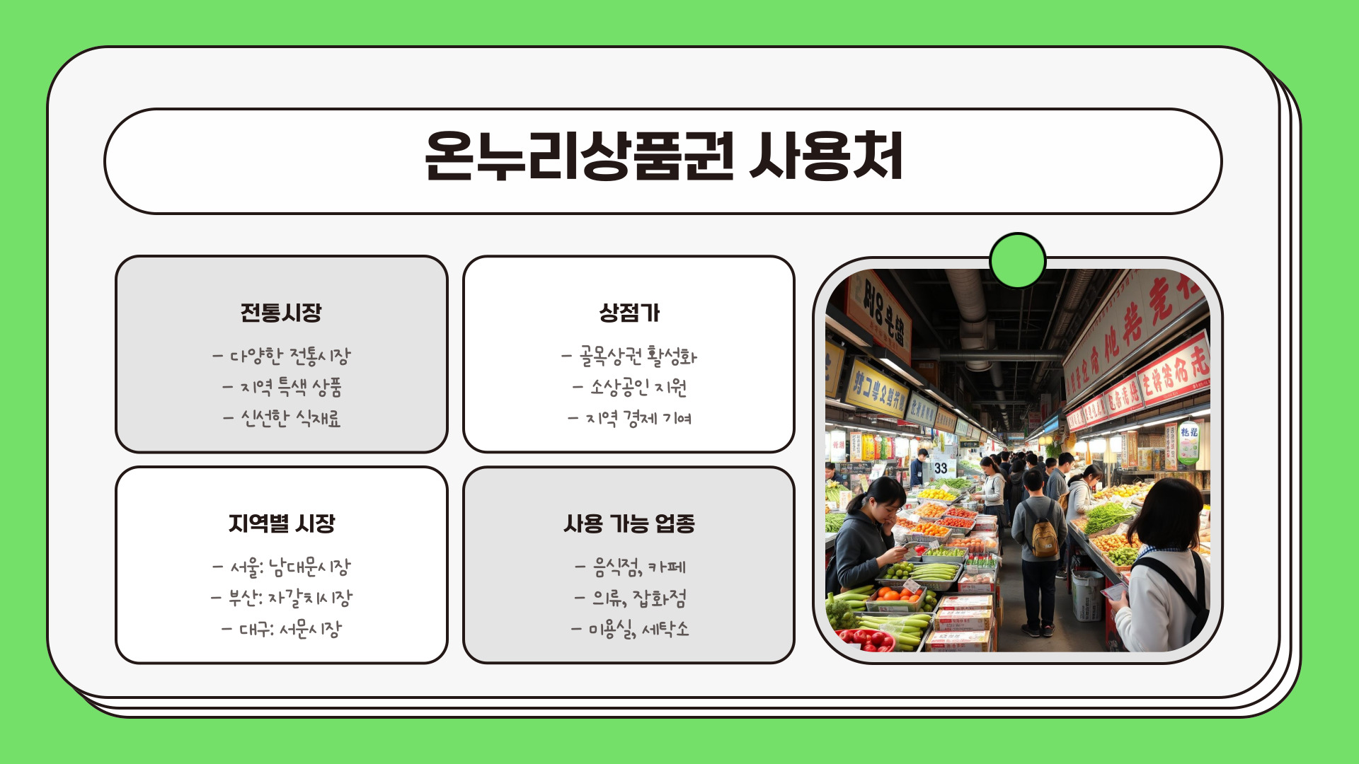 - 온누리상품권은 지역 경제를 활성화합니다.