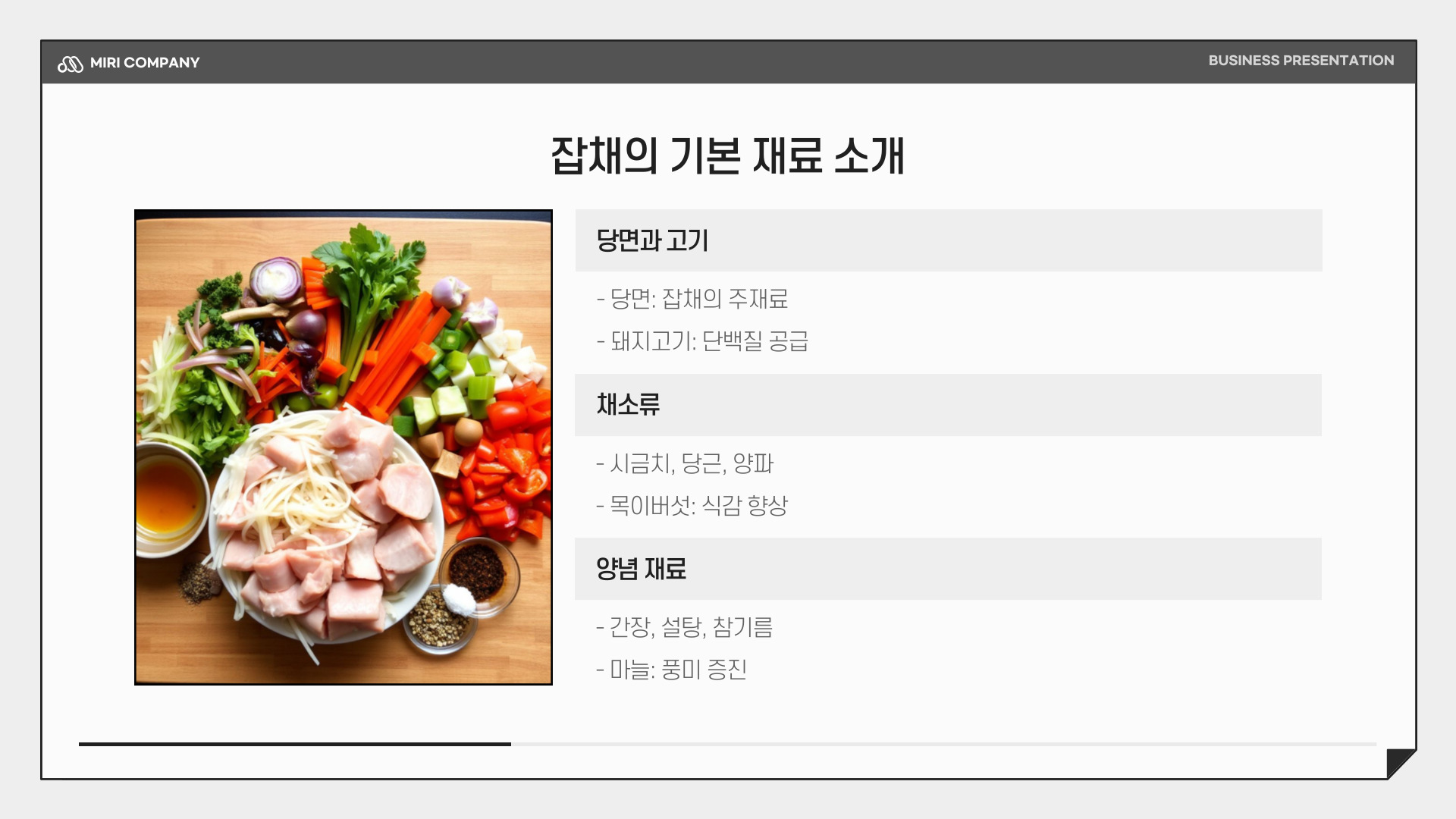 잡채를 조리하는 과정은 생각보다 간단합니다. 먼저, 팬에 기름을 두르고 고기를 볶다가, 색이 변하면 나머지 채소를 넣고 함께 볶습니다. 이때, 소금과 후추로 간을 해주면 좋습니다. 채소가 어느 정도 익으면 삶은 당면을 넣고 볶아줍니다.