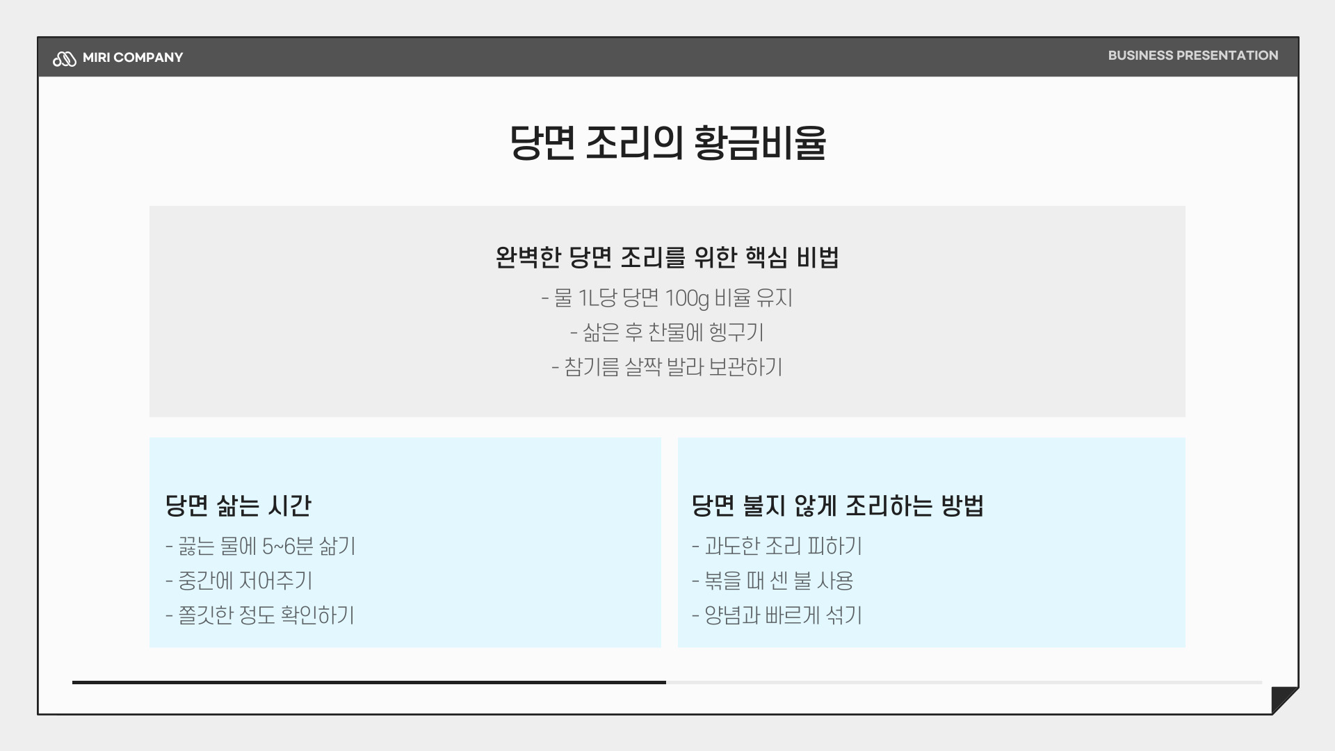 - 당면을 삶은 후 찬물에 헹구어 쫄깃한 식감을 유지하세요.