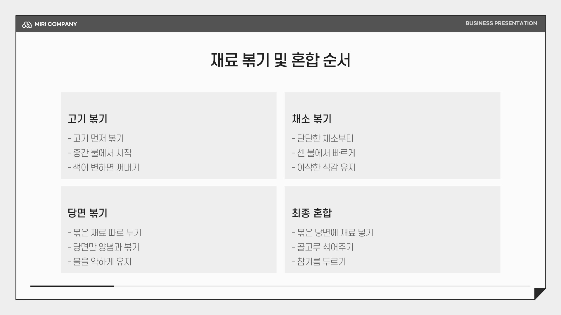 - 재료를 볶을 때 색깔이 예쁘게 변하는 순간을 챙기세요.