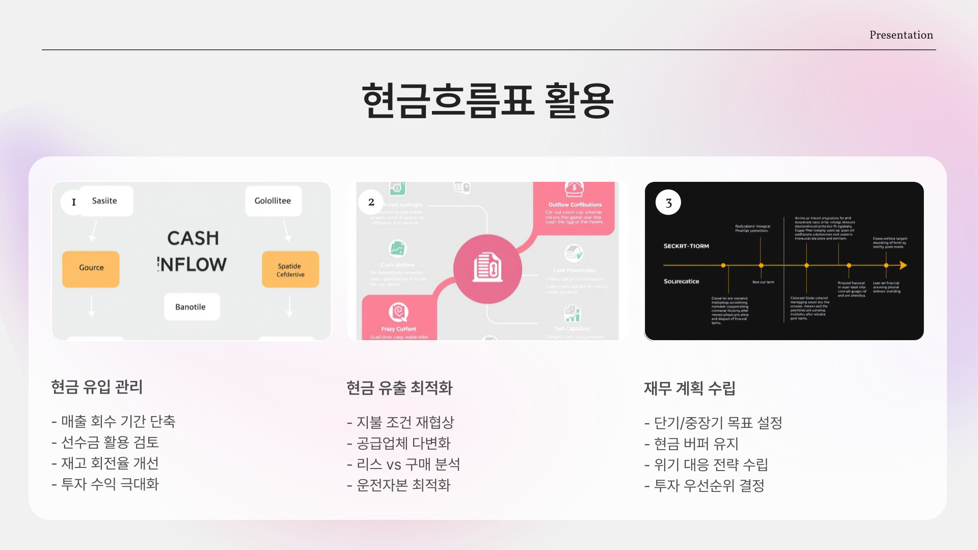 - 현금 유입 관리: 재무 계획 수립