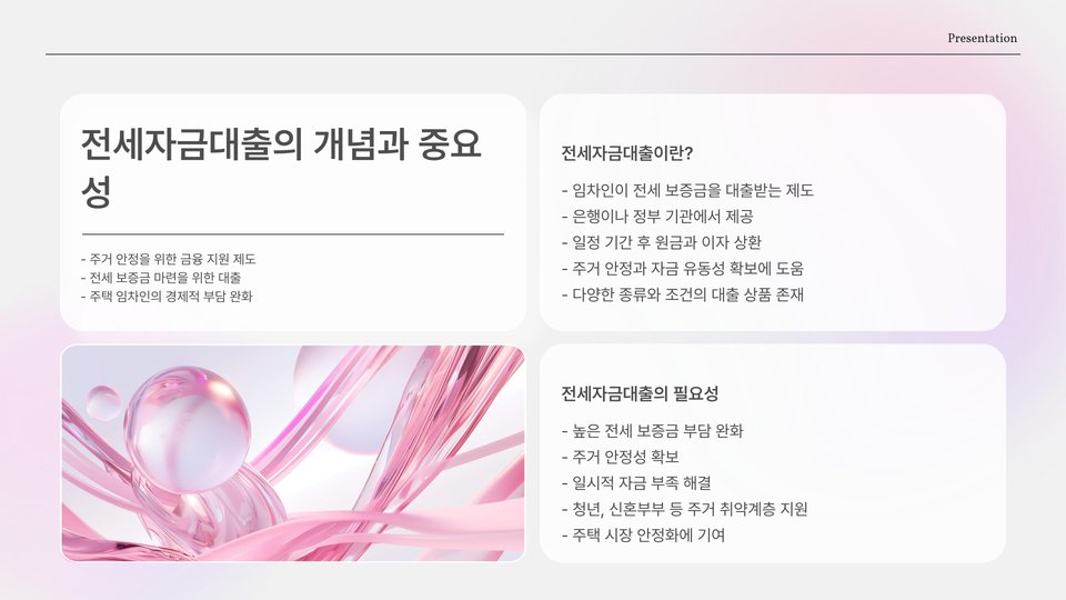전세자금대출은 주택 전세를 얻기 위한 자금을 대출받는 것을 말합니다. 주택을 소유하고 있지 않은 세입자가 전세 보증금을 마련하기 위해 금융기관에서 자금을 빌리는 형태입니다. 이 대출은 대개 상환 기간이 길고, 낮은 이자율로 제공되기 때문에, 많은 사람이 선호하고 있습니다.