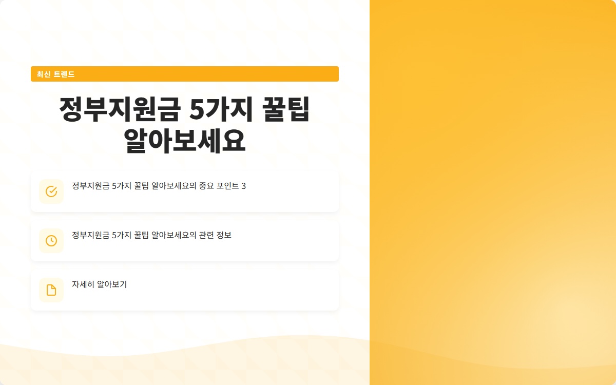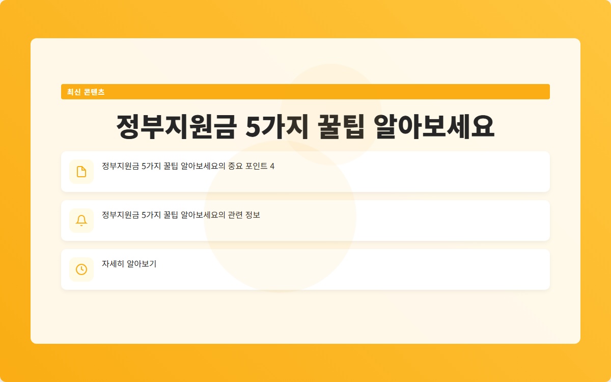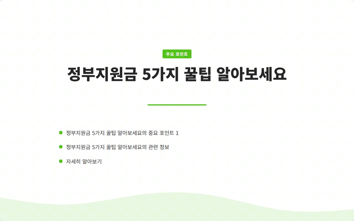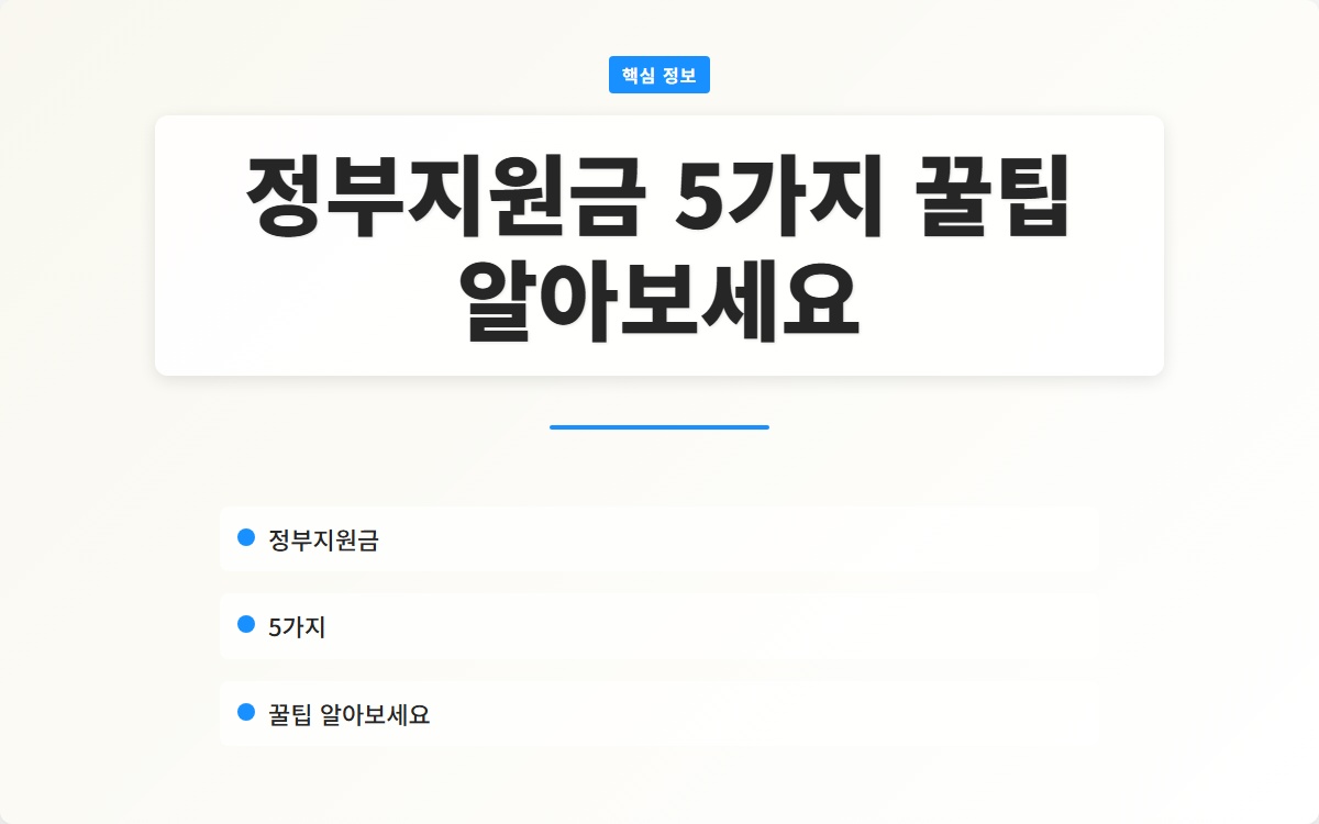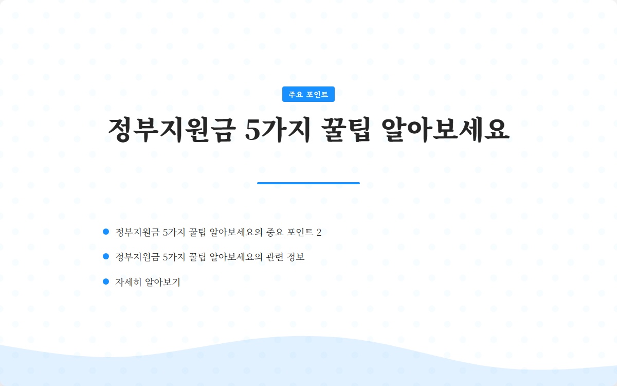정부지원금에 대해 얼마나 알고 계신가요? 많은 사람들이 혜택을 놓치고 있다는 사실, 알고 계셨나요? 지금 확인해보세요!