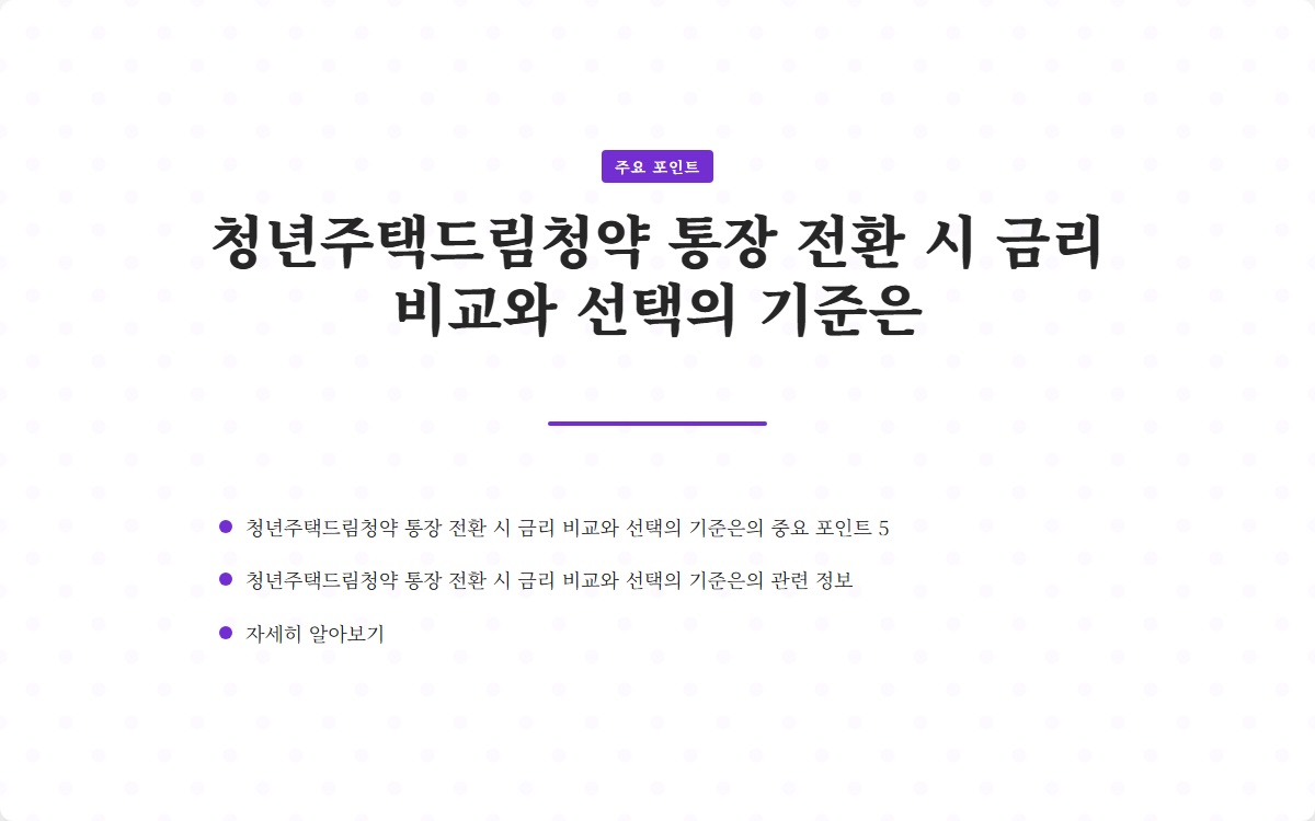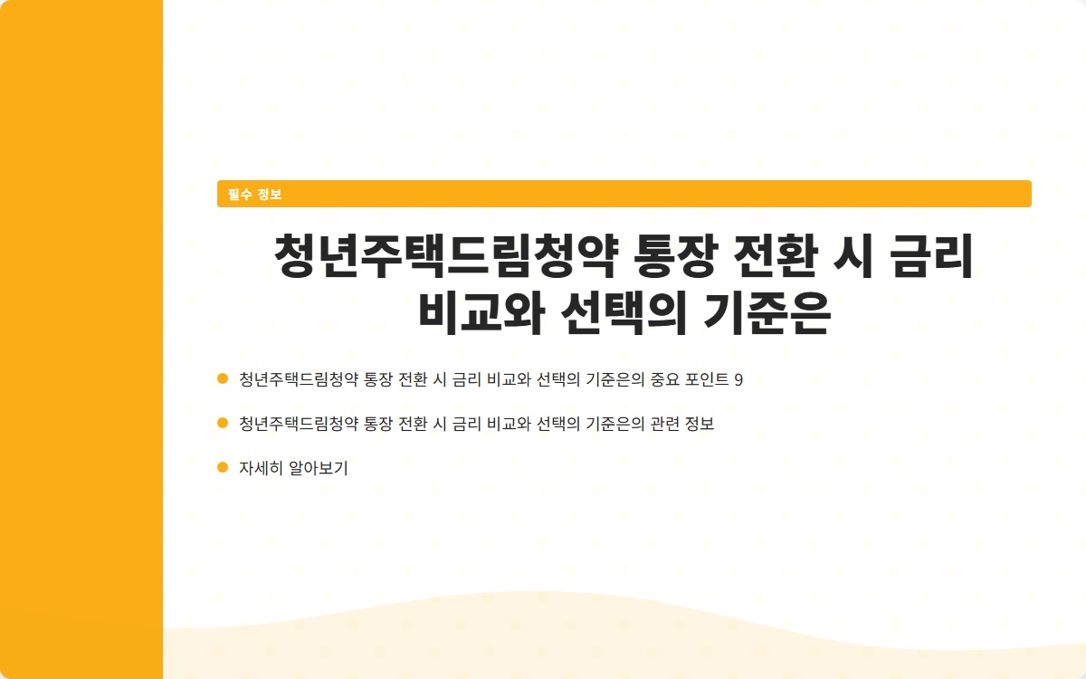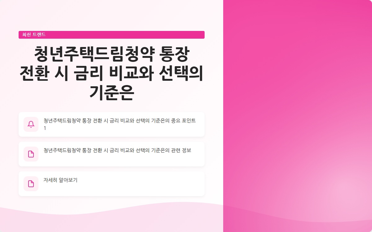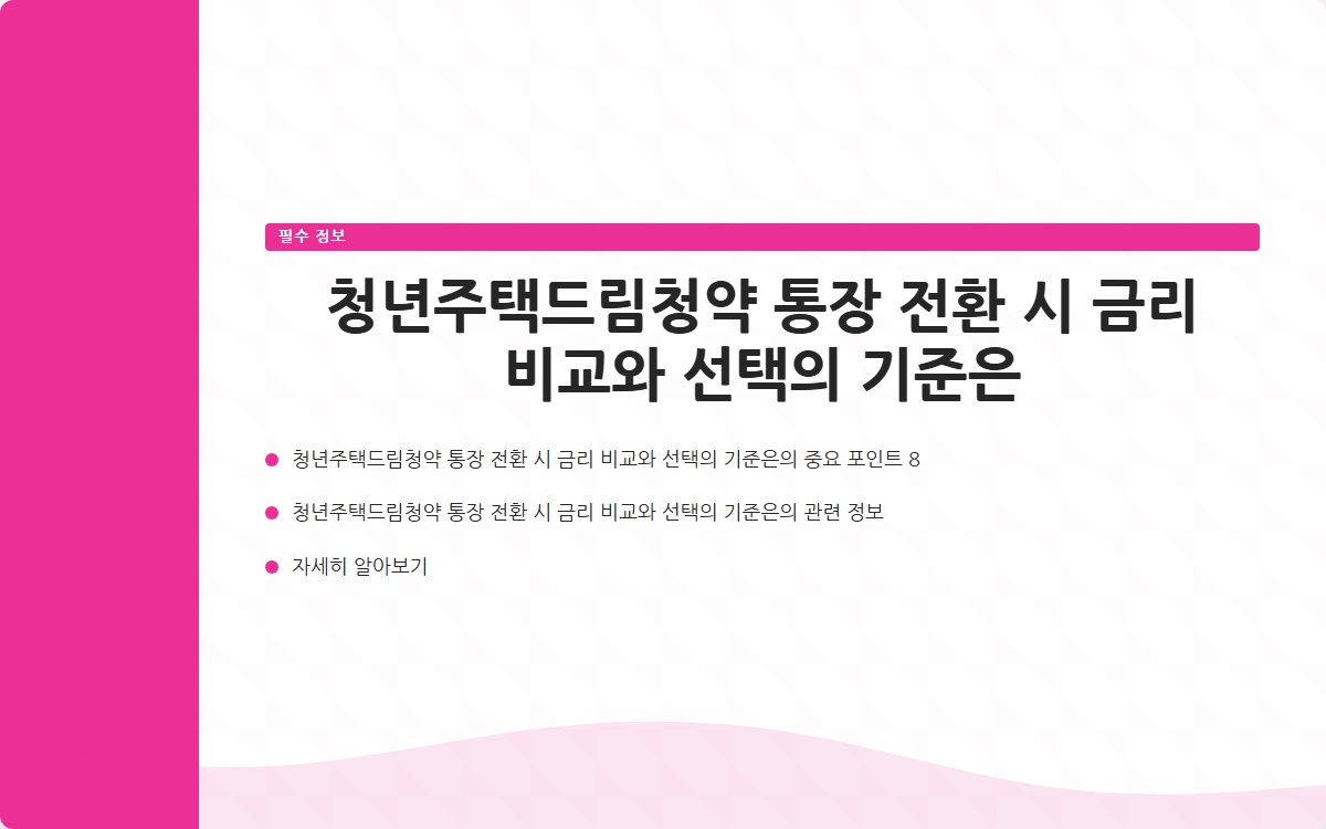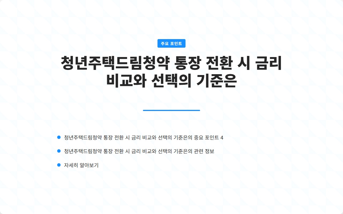 청년주택드림청약 통장 전환 시 금리 비교와 선택의 기준은