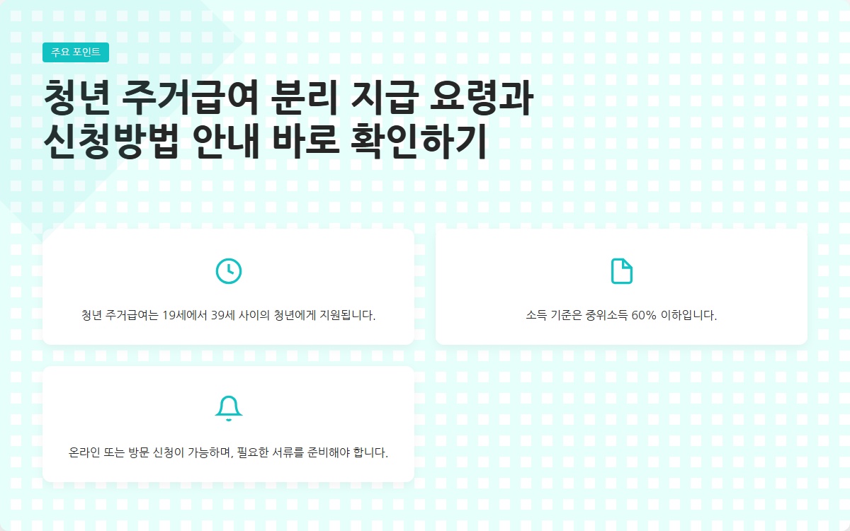 청년 주거급여 분리 지급 요령과 신청방법 안내 바로 확인하기
