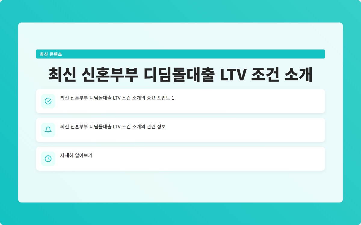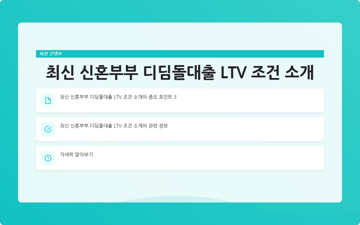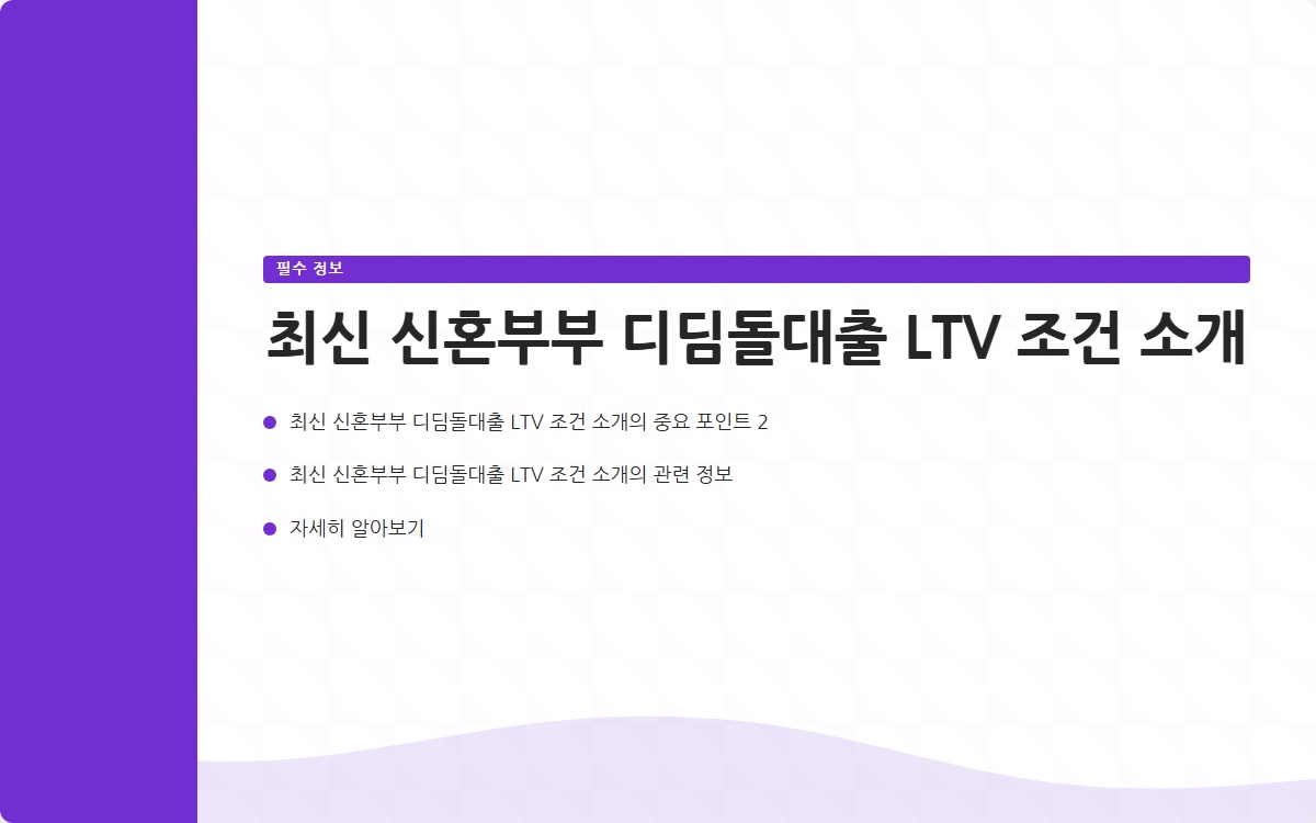 최신 신혼부부 디딤돌대출 LTV 조건 소개