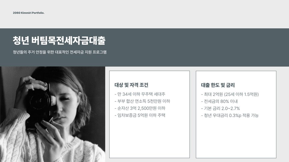 Tags: 청년버팀목전세대출, 청년전세자금대출, 대출조건, 주거안정, 금리, 대출한도, 무주택자, 소득증명서, 상환방법, 정부지원