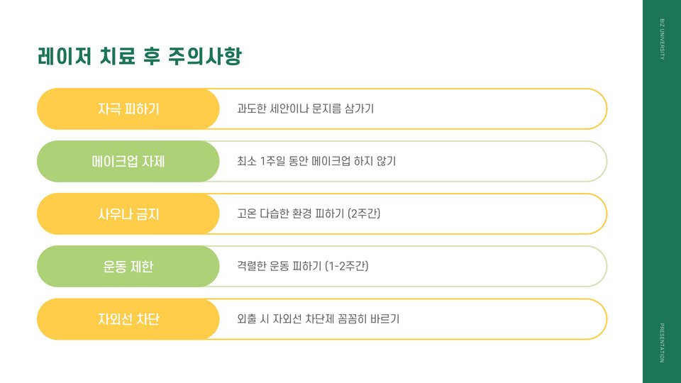 - 적절한 애프터케어 : 보습 및 자외선 차단 필수