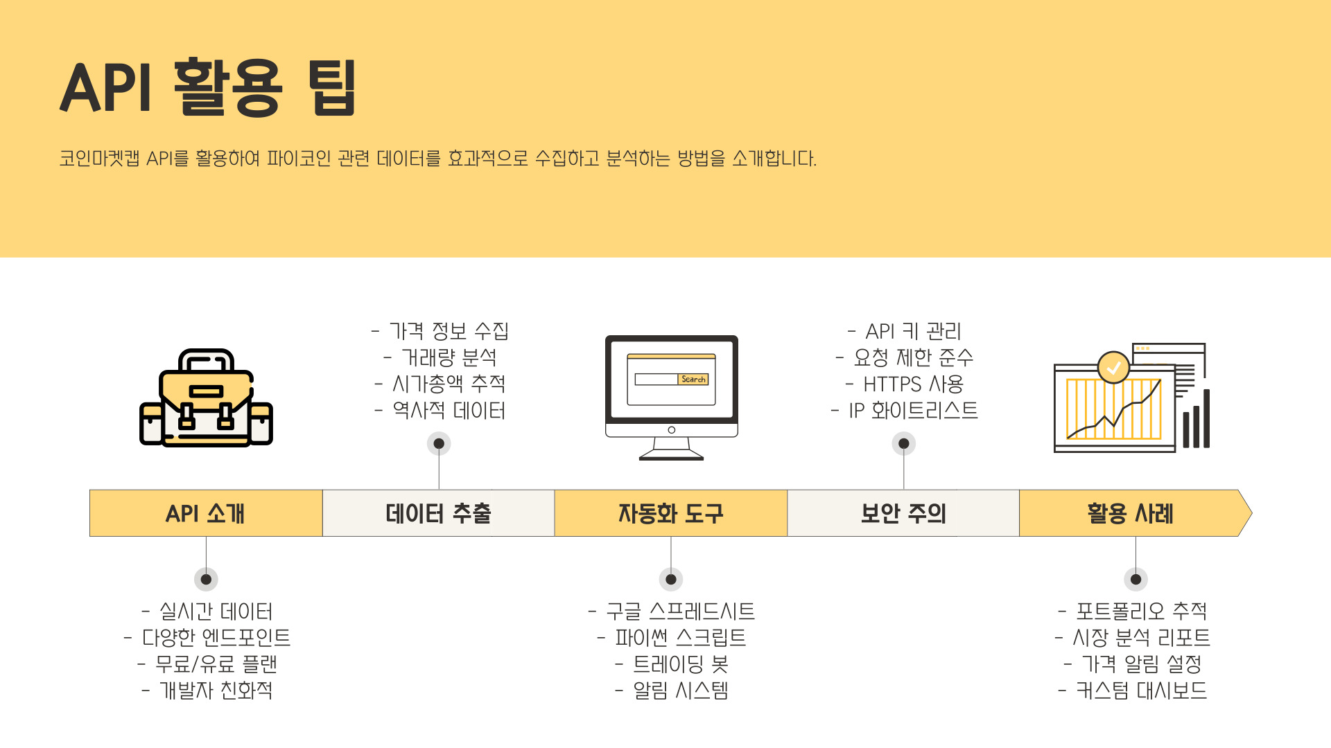 예를 들어, 장기 투자를 목표로 한다면, 파이코인의 기본 기술과 미래 가능성을 분석하고, 이와 관련된 정보를 코인마켓캡에서 정기적으로 확인해야 합니다. 반면, 단기 거래에 집중하고 싶다면 기술적 분석과 가격 변동 패턴 모니터링이 중요해집니다.