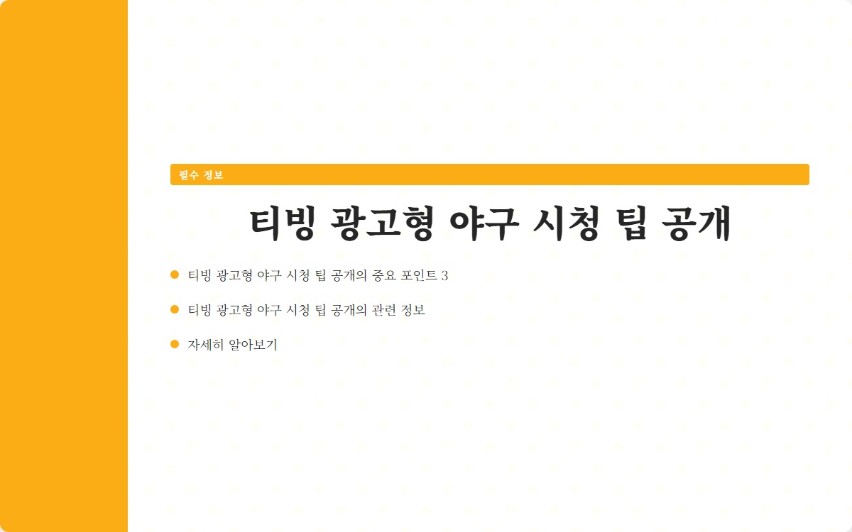 A. 티빙에서 광고형 야구를 시청할 때는 다음과 같은 팁을 활용하세요: