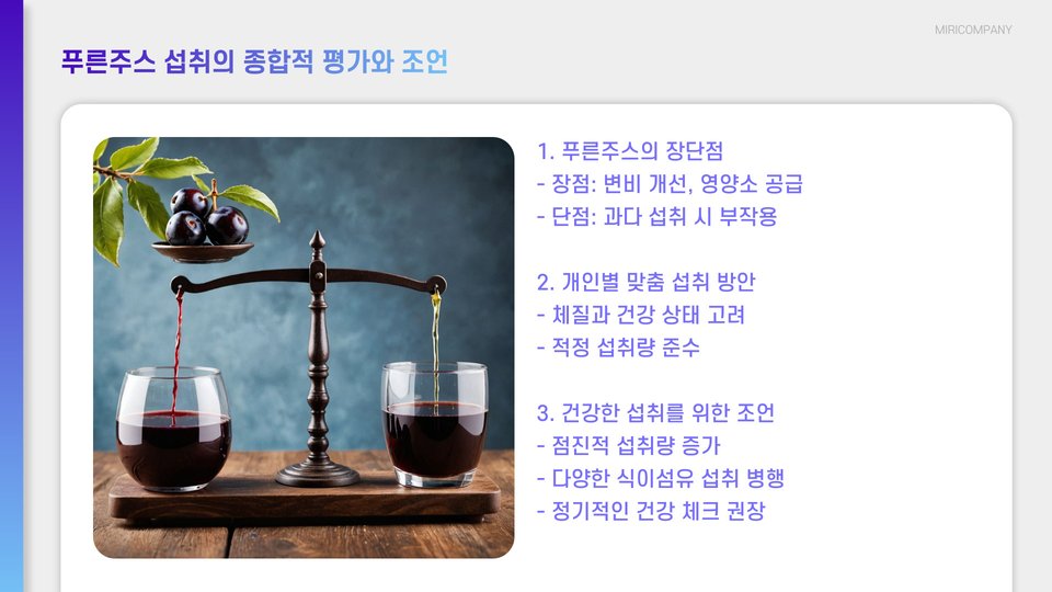 푸른주스는 다양한 건강 효능을 제공하지만, 그와 함께 부작용도 존재한다는 점을 간과해서는 안 됩니다. 위에서 언급한 부작용 및 장점을 비교함으로써, 자신에게 적합한 푸른주스를 선택하는 것이 중요합니다. 신선한 재료, 첨가물 여부, 몸상태 등을 고려하여 현명한 선택을 하여 건강을 증진하시기 바랍니다.