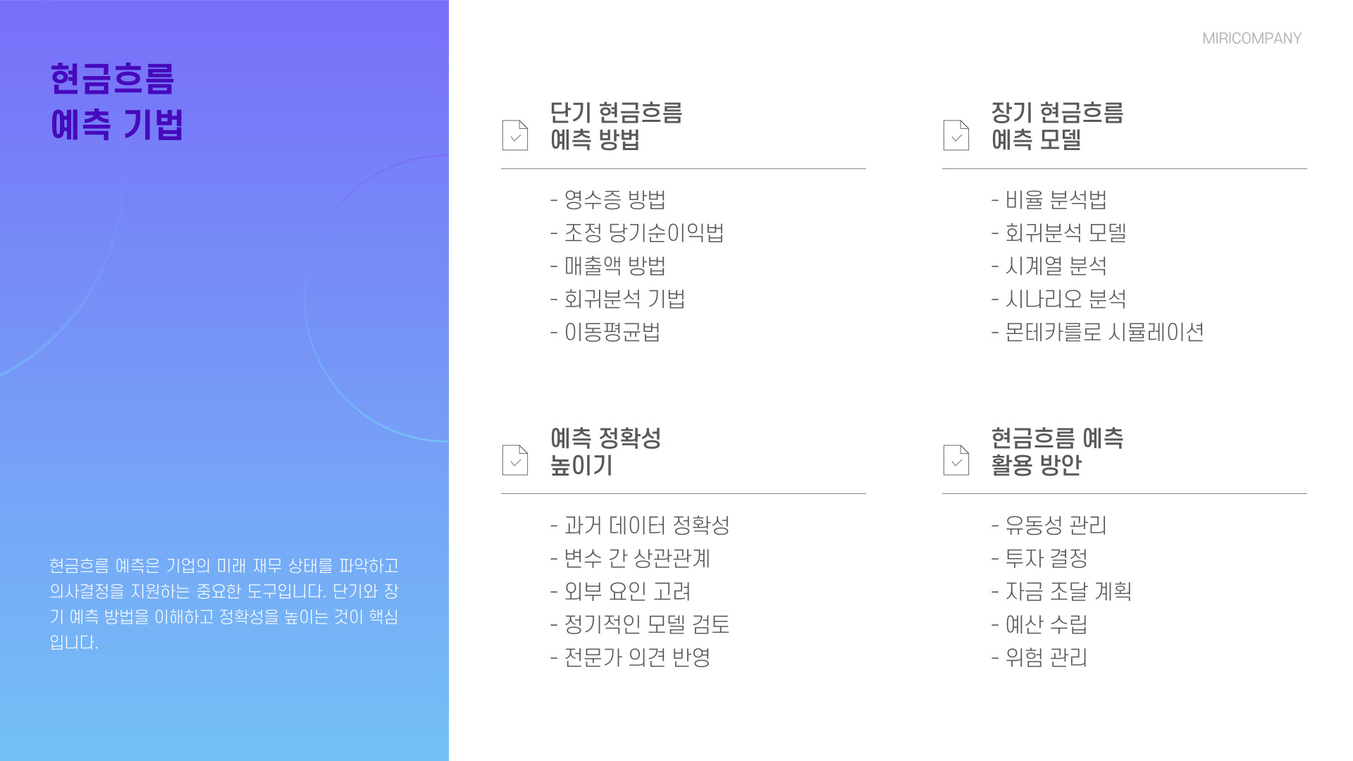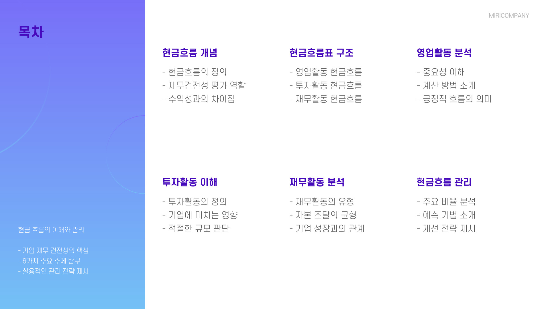 - 정기적인 현금 흐름 분석을 통해 비즈니스 상황 파악이 가능하다.