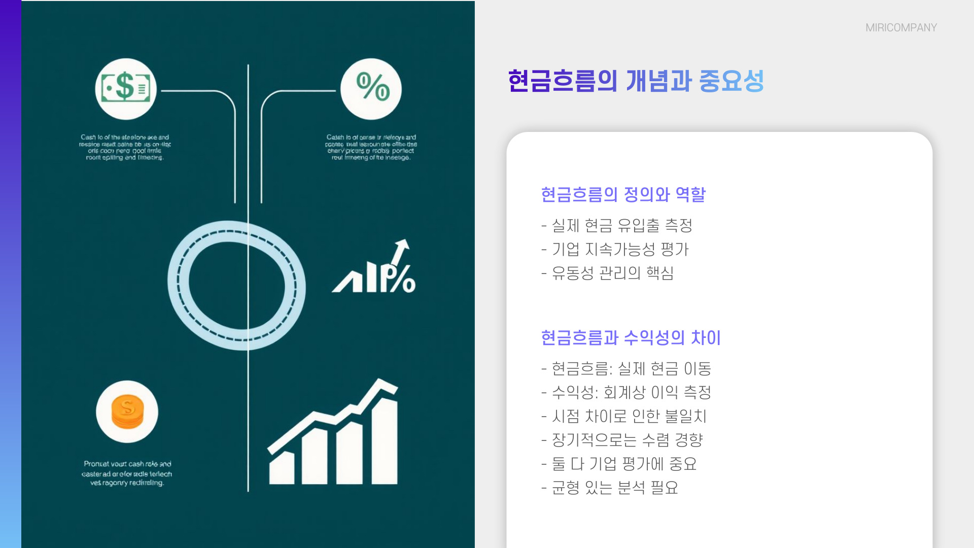 - 현금 흐름은 재정 건강의 핵심입니다.
