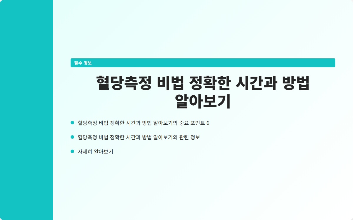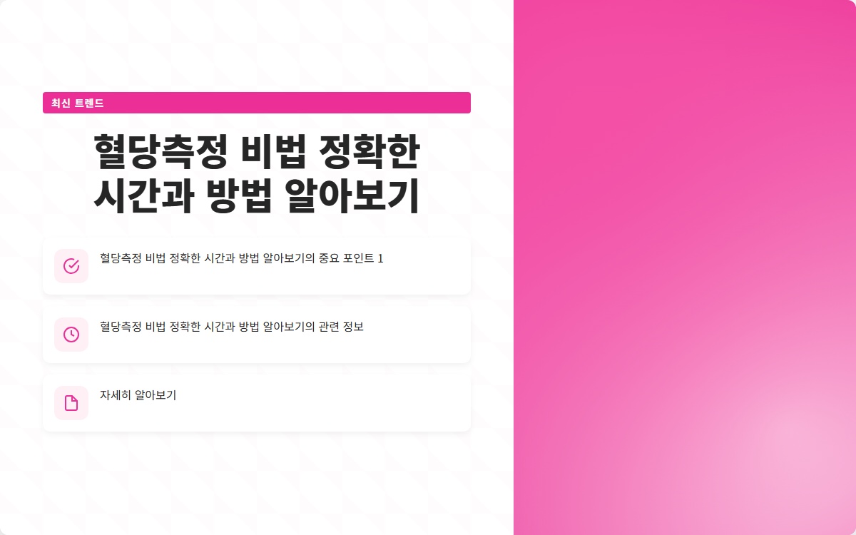 혈당측정은 당뇨 관리에 있어 매우 중요한 요소입니다. 정확한 혈당측정 비법을 알고 있다면, 건강한 생활을 유지하고 합병증을 예방하는 데 큰 도움이 됩니다. 이 글에서는 혈당측정의 정확한 시간과 방법에 대해 알아보겠습니다.