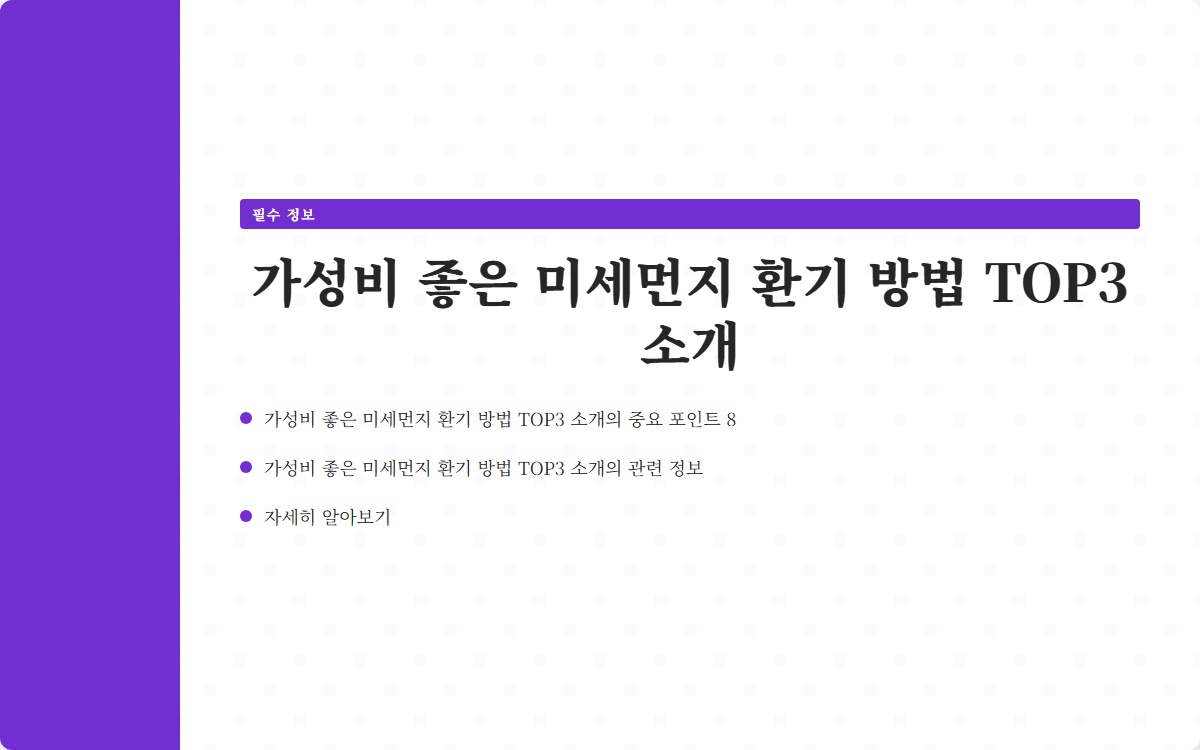 가성비 좋은 미세먼지 환기 방법 TOP3 소개