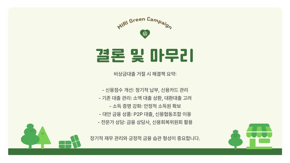 비상금대출이 거절될 때는 다양한 해결책과 대응 방법을 적용하는 것이 중요합니다. 신중한 계획과 적극적인 행동이 재정적 어려움을 극복하는 데 큰 도움이 될 것입니다.