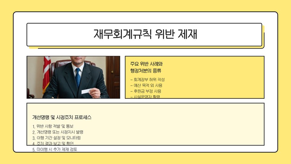셋째, 법적 준수를 통해 불이익을 방지할 수 있습니다. 재무회계규칙을 준수하지 않을 경우 발생할 수 있는 법적 문제를 예방할 수 있습니다.