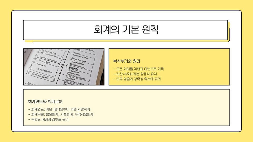 - 회계 원칙: 재무 거래 기록의 기본 지침